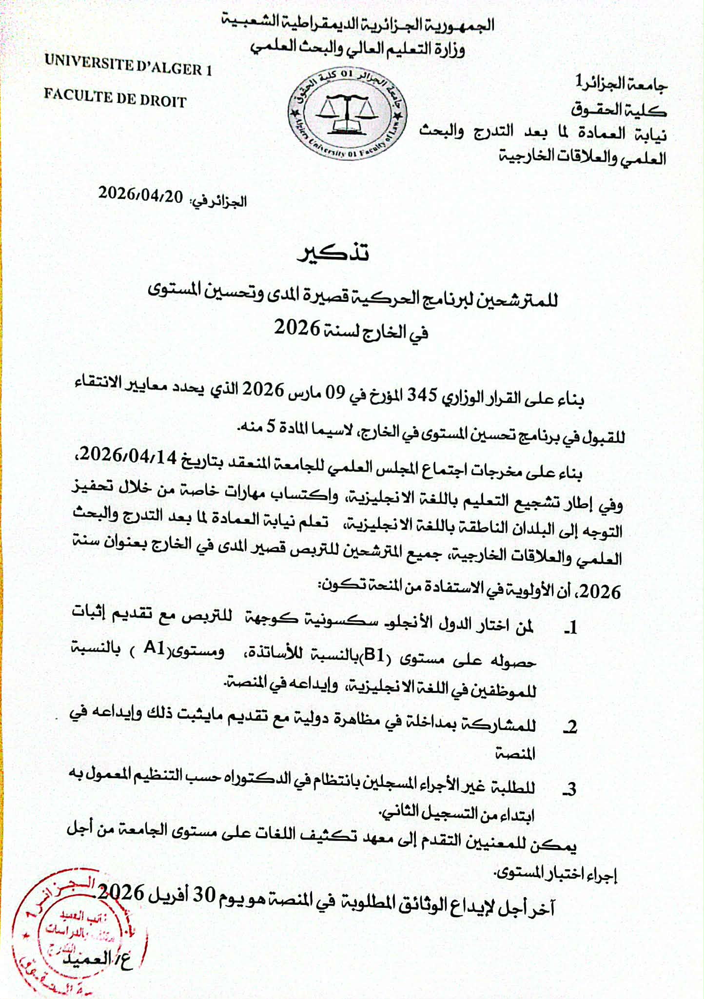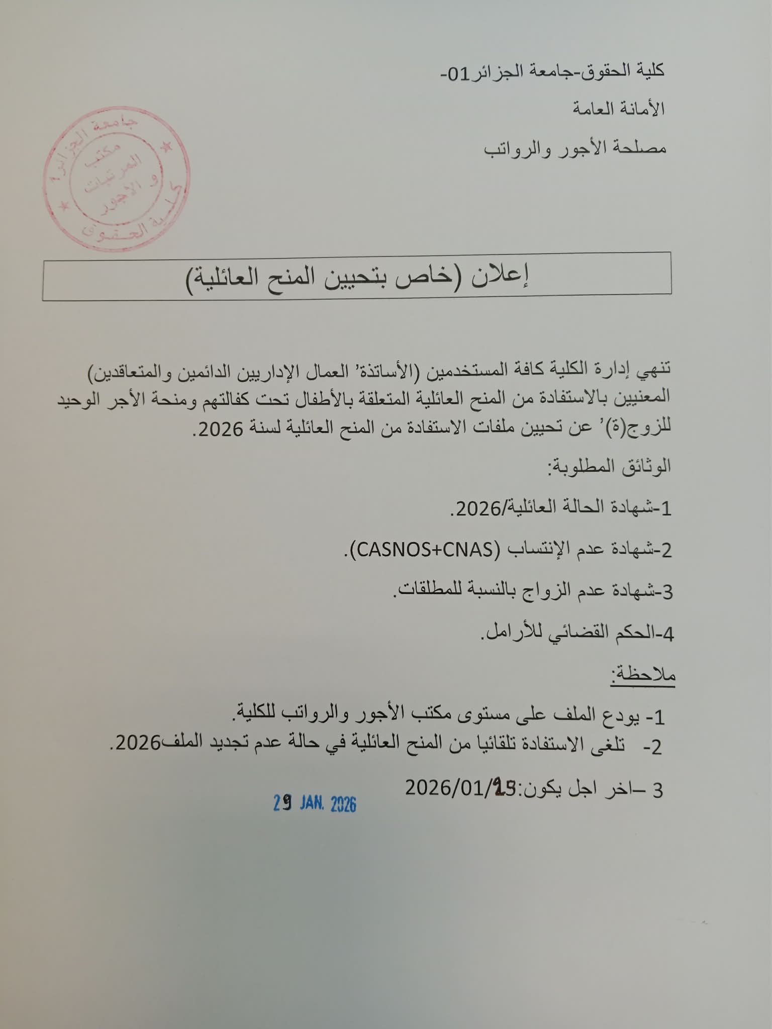 منذ تعييني لإدارة هذا الصرح العلمي العريق الذي وجد بوجود تدريس مادة القانون في الجزائر سنة 1879، ورفقة زملائي في الطاقم الإداري ،الأساتذة والموظفين، كل من موقعه، نسعى جاهدين لجعل كلية الحقوق قطب امتياز للتدريس والبحث في مجال القانون.